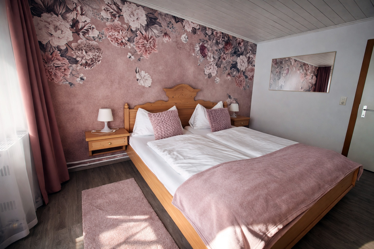 * Doppelbett mit Bettwäsche